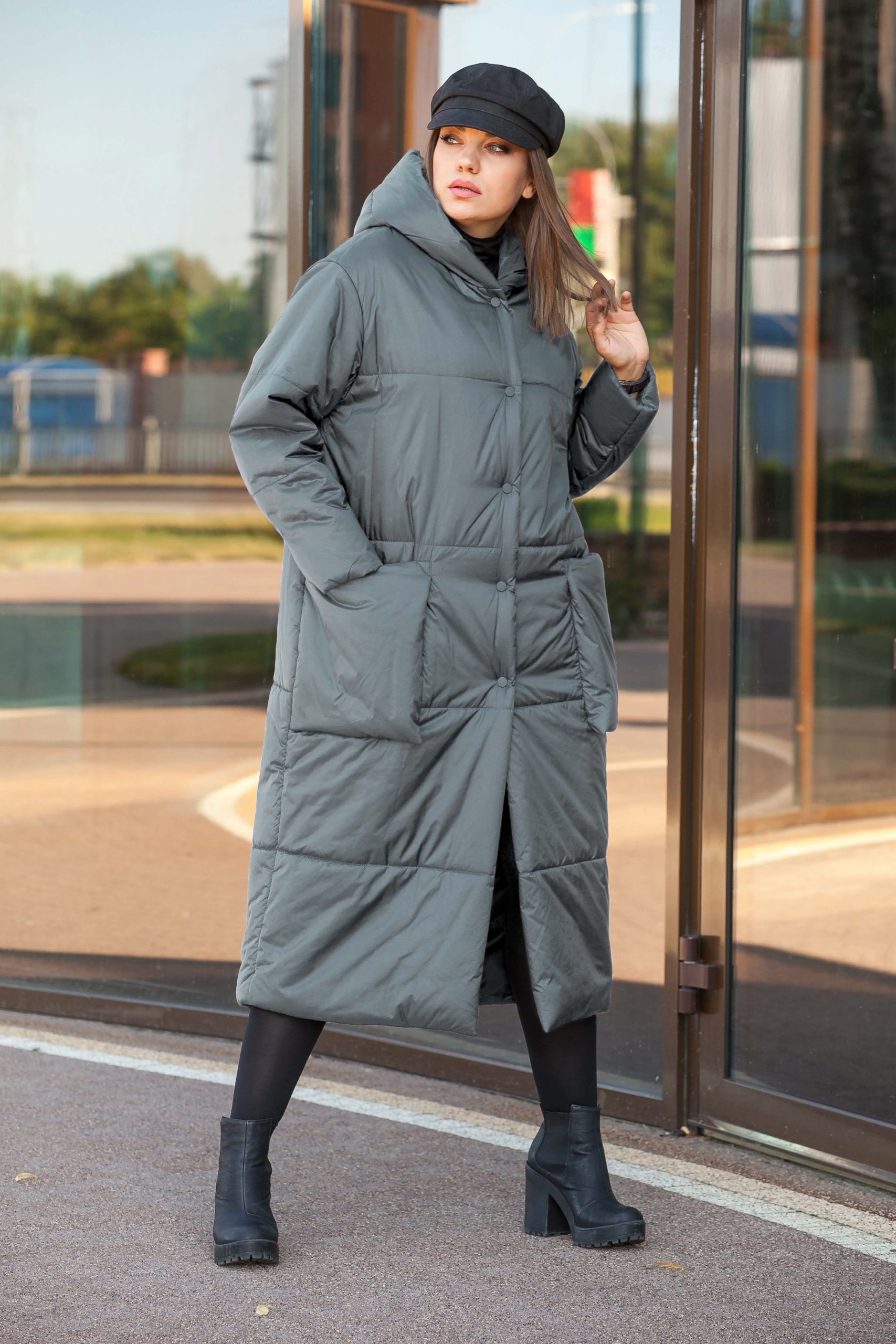 Стеганное пальто с капюшоном и накладными карманами, рукав втачной на приспущенной пройме, застежка на кнопке. Изделия из ткани с водоотталкивающим эффектом, на прохладную осень/ теплую зиму. Уникальный бельгийский утеплитель ISOSOFT, который при практически не ощутимом весе и толщине, в два раза теплее обычных синтетических утеплителей (заменяет 4 слоя синтепона), легко восстанавливает форму и не теряет ее после многочисленных стирок. Обладает эффектом термоса (сохраняет тепло тела). Пальто сочетает в себе стиль и модные тенденции.