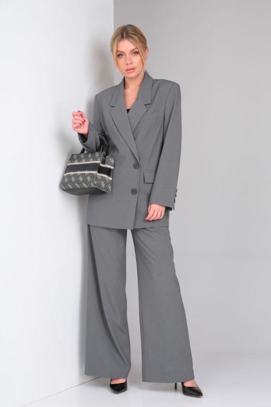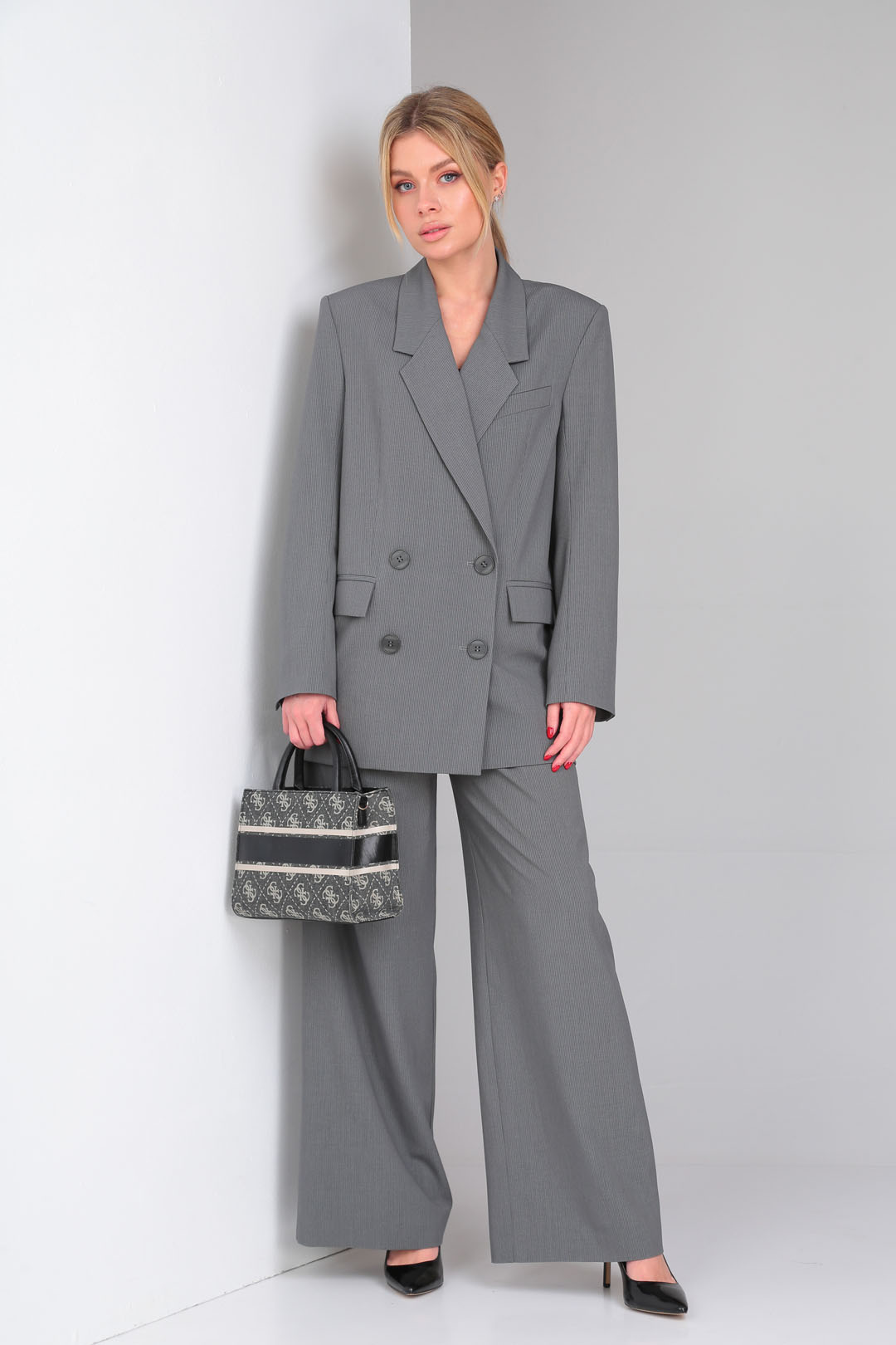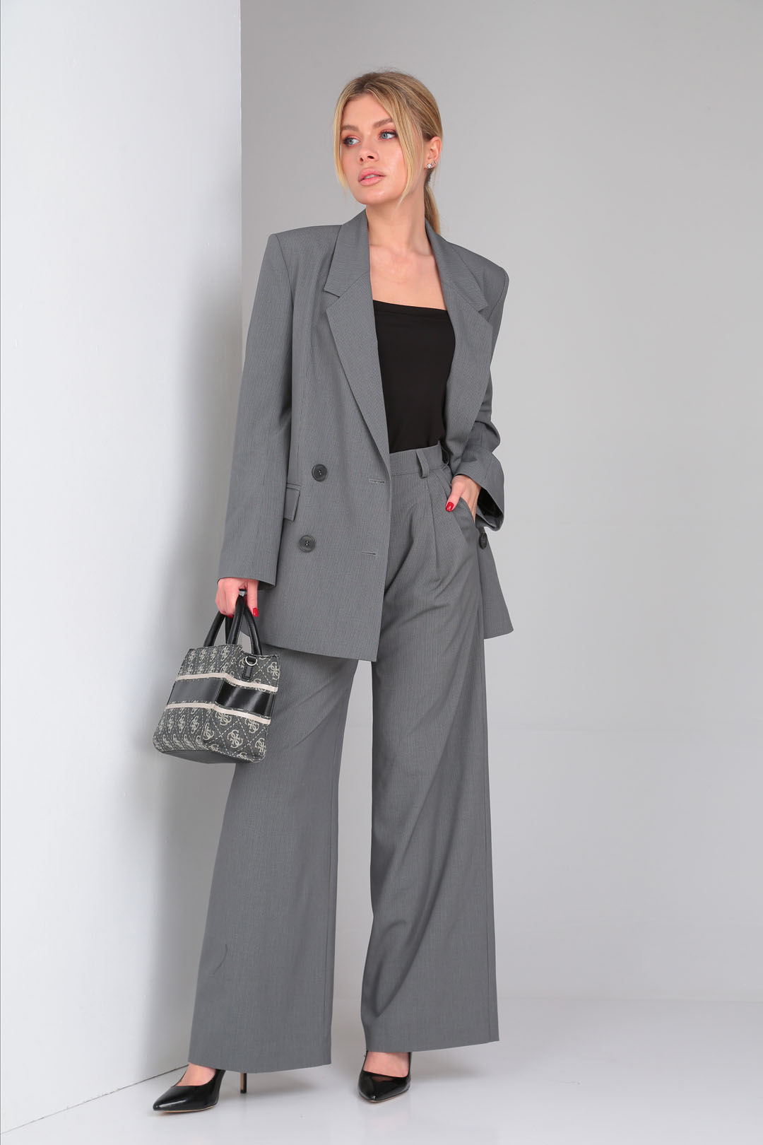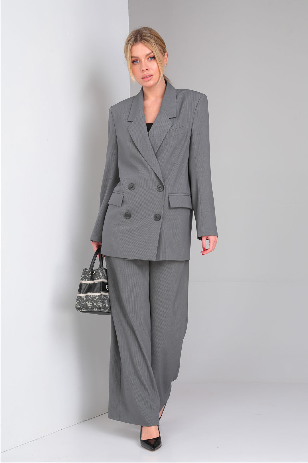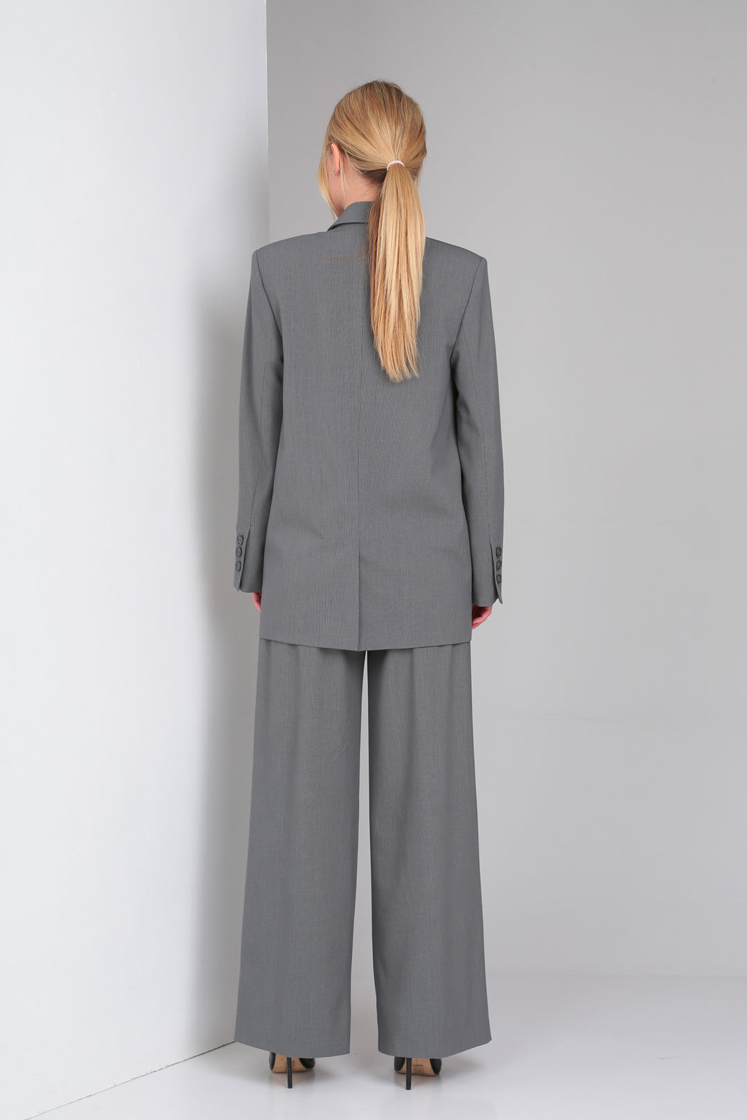 Неподвластный времени, всегда актуальный, классический костюм свободного силуэта. Двубортный жакет на подкладке, рукав втачной двухшовнный со шлицей и пуговицами, прорезные карманы в рамку с клапаном, нагрудная втачная листочка в рамку. Застежка петли, пуговицы. Брюки свободного силуэта «ПАЛАЦЦО» с карманами, застежка молния.