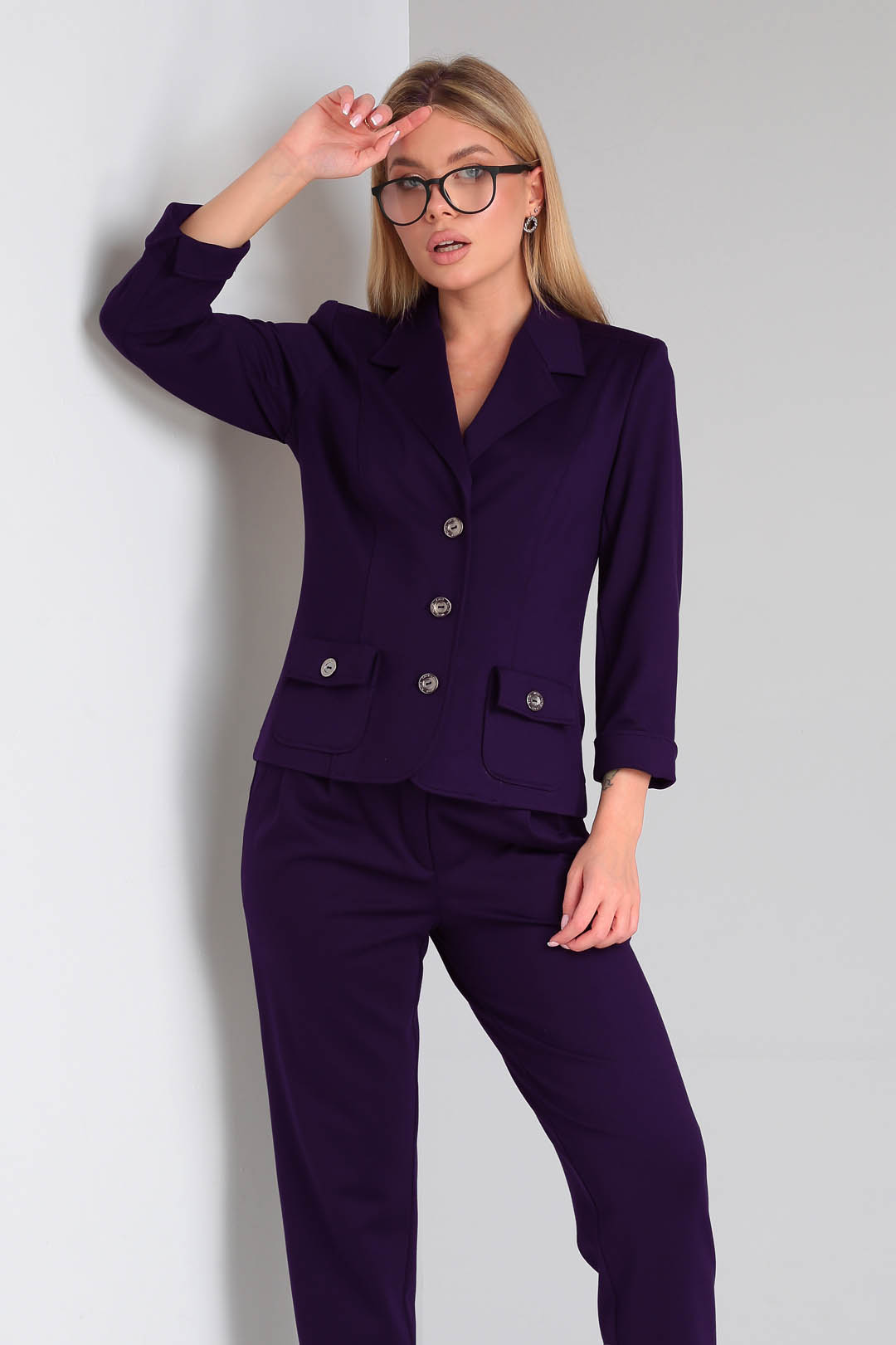 Красивый и стильный костюм в котором вы можете пойти не только на прогулку, но и ходить в нем на работу, по делам, выбираться в кино или кафе. Костюм выполнен из трикотажного полотна, что позволяет чувствовать себя в нем комфортно. Отлично смотриться как под классическую так и спортивную обувь. Жакет полуприлегающего силуэта с функциональными накладными карманами создает точеный силуэт - идеальная классика. Застежка на 3 пуговицы. Рукав три четверти с отворотом, без подкладки. Брюки свободного силуэта с карманами, средней посадки на поясе- обтачке со шлевками, застежка молния спереди. Неутомимая любовь к деталям и удобству раскрывается в каждом элементе этого комплекта. Длина жакета 42-46р-57см, длина жакета 48-50р-59см, длина рукава-54см. Длина брюк 42-46р-96см, длина брюк 48-50-98см.