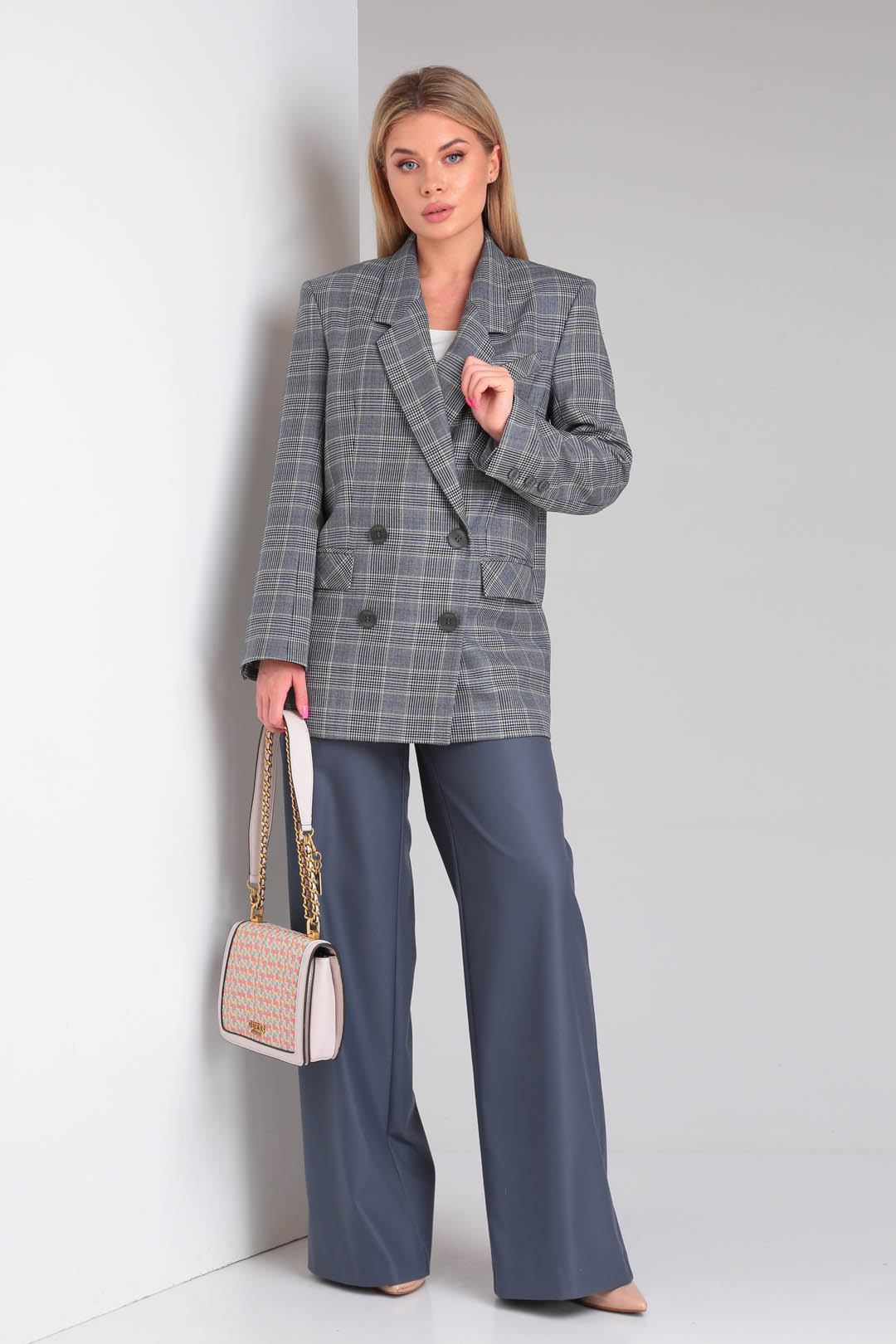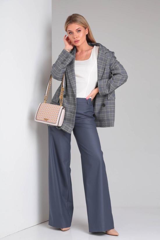 Неподвластный времени, всегда актуальный, классический костюм. Двубортный пиджак приталенного силуэта с подрезом по линии талии, рукав втачной двухшовнный с декоративными петлями, карманы в рамку с клапаном. Застежка петли, пуговицы. Брюки на поясе со шлевками, расширены от линии бедра, застежка на молнию спереди. Брюки Вискоза 30% Полиэстер 68% Лайкра 2%. Длина жакета 75 см, рукав 61, длина брюк 111 см.